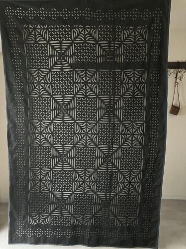 表地を切り抜き、裏地に縫い合わせた手作業が